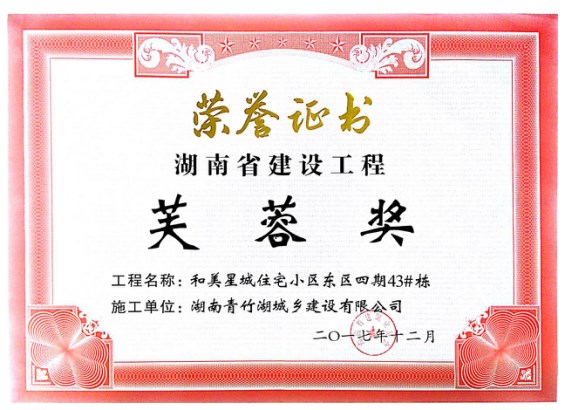 喜报!2017年12月,湖南青竹湖城乡建设有限公司承建的“长沙福天和美中心6#栋”、“和美星城住宅小区43#栋”两个工程凭借过硬的质量,优秀的技术,层层过关斩将荣获湖南省建筑工程质量最高奖—“芙蓉奖”!2018年1月19日正式进行颁奖典礼,公司总经理粟亿万和项目经理杨忠亮受邀参加。至此,两个芙蓉奖再次充分证明了公司雄厚的实力,代表着公司在建筑行业的综合竞争力又上一个高峰。奖励是肯定更是鼓励,公司将以更高的标准要求自身,追求更好的品质回馈社会!